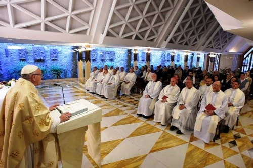 Francisco prosseguiu a homilia completando o texto de Mateus com as considerações que o evangelista Lucas coloca no final das Bem-Aventuranças – ai de vocês, os ricos, ai de vocês, que agora têm fartura, ai de vocês, que agora riem, ai de vocês, se todos os elogiam – para recordar o que dito: “As riquezas são boas, mas o que faz mal é o apego às riquezas “que se torna “uma idolatria”. “Isto é contrário à lei. É o GPS errado. É curioso! Estes são os três degraus que levam à perdição, assim como estas Bem-Aventuranças são os degraus que levam adiante na vida. Os três degraus que levam à perdição são: o apego às riquezas, porque eu não preciso de nada. O segundo é a vaidade. Quero que todos falem bem de mim. Se todos falam bem me sinto importante, muito incenso e eu acredito ser justo, não como aquele ou como aquele outro. Pensemos na parábola do fariseu e do publicano: ‘Ó Deus, eu te agradeço, porque não sou como os outros homens…’. ‘Obrigado, Senhor, porque sou um bom católico, não como o meu vizinho ou a minha vizinha’. Todos os dias isso acontece! O terceiro degrau: o orgulho, que é a saciedade, as risadas que fecham o coração”.