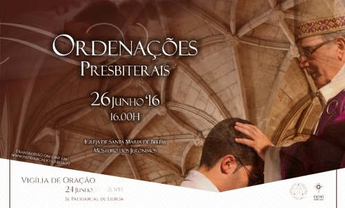 Realizam-se no próximo Domingo, 26 de junho, às 16h00, na igreja de Santa Maria de Belém, no Mosteiro dos Jerónimos, em Lisboa, as Ordenações Presbiterais. A celebração vai ser presidida por D. Manuel Clemente, Cardeal-Patriarca, e concelebrada pelos Bispos Auxiliares e demais sacerdotes da diocese, e vão ser ordenados seminaristas do Seminário dos Olivais, do Seminário ‘Redemptoris Mater’, em Caneças, e também religiosos.