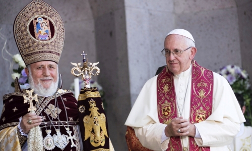 No último dia da viagem, ficou também evidente o profundo desejo de unidade e comunhão entre a Igreja de Roma e a Igreja Apostólica Arménia, que celebrou ao ar livre, excecionalmente e em honra do Papa, com máxima solenidade, a Divina Liturgia (o equivalente à Missa da Igreja Católica de rito romano). Durante a celebração, Francisco foi convidado a discursar, manifestando anseios de unidade e desejos de um futuro sem divisões. “Escutemos as gerações mais jovens, que pedem um futuro livre das divisões do passado”, pediu o Papa, realçando que a união entre os cristãos não pode ser submissão, nem absorção, mas sim “acolhimento”. “Que a Igreja Arménia caminhe em paz e a comunhão entre nós seja plena”, desejou. Para Karekin II, “a raiz do mal na vida atual está na tentativa de construir um mundo sem Deus”.