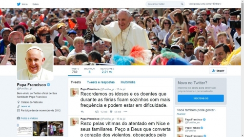 5. A conta do Papa na rede social Twitter, ‘@Pontifex’,atingiu a marca de 30 milhões de seguidores, com mais de 2,2 milhões em língua portuguesa, revelou esta semana a Rádio Vaticano. No início deste ano, os seguidores eram 26 milhões; nos últimos dois meses, a conta ganhou um milhão de novos seguidores, atingindo uma média de 16.100 pessoas a cada 24 horas, informa a emissora pontifícia.