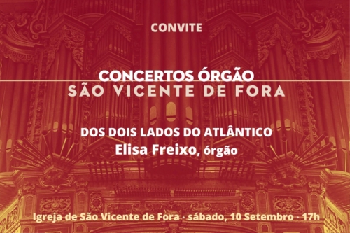 A Igreja de São Vicente de Fora, em Lisboa, recebe no próximo sábado, 10 de setembro, às 17h00, o concerto de órgão ‘Dos dois lados do Atlântico’, pela organista Elisa Freixo. “Organista brasileira, com um trabalho de referência na preservação de órgãos históricos no Brasil, vai tocar no órgão histórico da Igreja de São Vicente”, refere um comunicado da Editora Althum.com, que organiza a iniciativa de entrada livre, em conjunto com o Patriarcado de Lisboa.