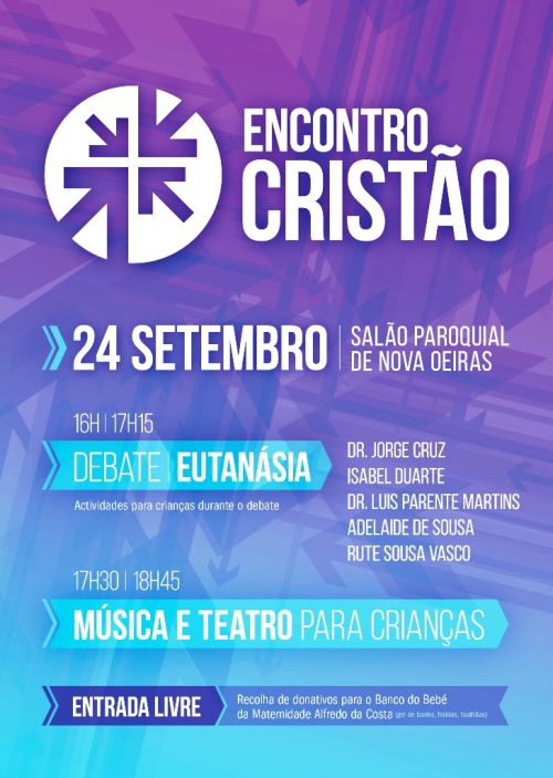 “Colocar as diferenças de lado e a celebrar o que os une: Cristo”. É este o objetivo do Encontro Cristão da Grande Lisboa que a paróquia de Nova Oeiras organiza este sábado, dia 24 de setembro, às 16h00, no salão paroquial. O encontro vai contar com mais de uma dezena de entidades evangélicas e católicas e o debate tem como tema a Eutanásia. Durante a reflexão, estão previstas atividades para as crianças.