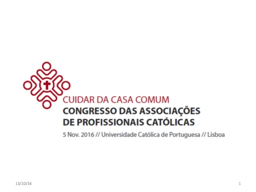 Refletir, à luz da encíclica Laudato Si, sobre ‘Que tipo de mundo queremos deixar a quem nos vai suceder?’ e promover o conhecimento e potenciar a ação, individual e conjunta, das associações profissionais católicas da Diocese de Lisboa são os dois objetivos do Congresso das Associações Profissionais Católicas, que é aberto a todos os profissionais católicos da diocese, embora seja especialmente dirigido aos membros das associações que promovem o congresso (Ação Católica Rural, Associação Católica dos Enfermeiros e Profissionais de Saúde, Associação Cristã dos Empresários e Gestores de Empresas, Associação de Professores Católicos, Associação dos Arquitetos Católicos, Associação dos Assistentes Sociais Católicos, Associação dos Farmacêuticos Católicos, Associação dos Juristas Católicos, Associação dos Psicólogos Católicos, Associação Portuguesa dos Médicos Católicos, Juventude Operária Católica - JOC e Liga Operária Católica - LOC).