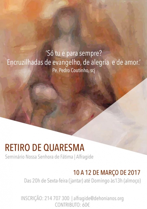 O Seminário Nossa Senhora de Fátima, em Alfragide, pertencente aos Sacerdotes do Coração de Jesus (Dehonianos), organiza um retiro de Quaresma que decorre desde as 20h00 de sexta-feira, 10 de março, até às 13h00 de Domingo, dia 12.