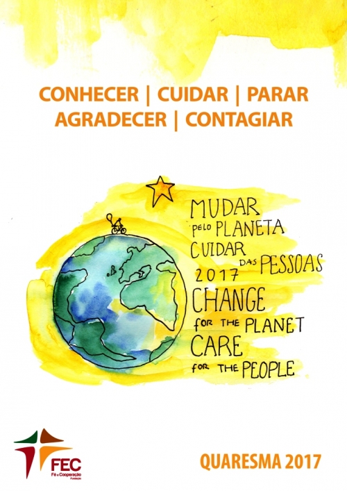 Sob o tema “Conhecer. Cuidar. Parar. Agradecer. Contagiar”, a FEC faz a proposta de esta Quaresma com o compromisso de diariamente ler um excerto da Encíclica Laudato Si (https://goo.gl/PRrUfG) e nos tornarmos mais conscientes daquilo que nos é pedido quando nos referimos ao “cuidado pela casa comum”. Propomos também o uso das redes sociais para a divulgação da mensagem e para contagiar mais pessoas pelo cuidado da nossa casa comum!