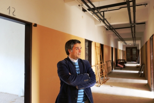 Originalmente, o pavilhão B teria pouco mais de 30 quartos por cada um dos três andares, mas o 1º andar já está transformado e de cada dois quartos fez-se um – tem, portanto, cerca de 16 gabinetes, que à partida são para manter. Nos outros dois pisos temos de fazer quartos com casas-de-banho – porque, na altura, os quartos não tinham casas-de-banho individuais mas balneários comuns –, portanto é natural que diminua o número de quartos, mas falta ainda acertar o número certo.