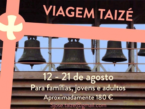 A Paróquia de São José de Algueirão - Mem Martins - Mercês, na Vigararia de Sintra, está a promover uma viagem a Taizé, que vai decorrer de 12 a 21 de agosto. Esta ‘Peregrinação de Jovens, Adultos e Famílias a Taizé’ tem um custo estimado de cerca de 180 euros por pessoa e as inscrições podem ser feitas através do link: https://goo.gl/JesBxg.
