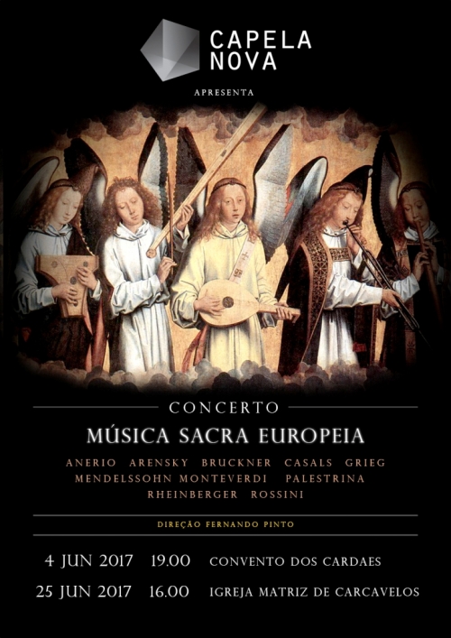 O grupo vocal de câmara Capela Nova apresenta-se em concerto este Domingo, 4 de junho, pelas 19h00, no Convento dos Cardaes, em Lisboa, com um programa dedicado à Música Sacra Europeia, sob a direção de Fernando Pinto.
