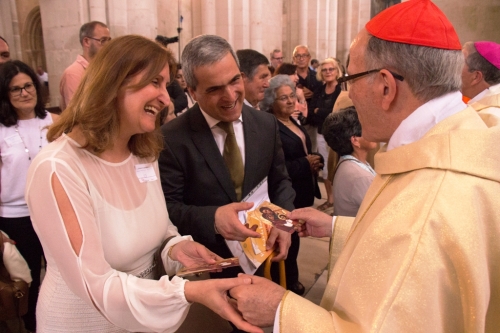 Perante cerca de 150 casais que comemoraram as bodas matrimoniais (10, 25, 50 e mais anos), o Cardeal-Patriarca lembrou, durante a catequese, o fundamento do sacramento do Matrimónio como único suporte perante a adversidade. “Dentro desta família grande dos filhos de Deus, existem as famílias de cada um, constituídas pelo sacramento do Matrimónio que têm a particularidade de fazer com que o Espírito de Deus seja aquele Espírito com que Cristo nos amou e que passa a ser o amor com que marido e mulher se amam um ao outro. Essa é a graça própria deste sacramento. O que faz o sacramento do Matrimónio é que os esposos não vivem apenas da atração natural mas, mesmo quando essa atração fraqueja ou dilui um pouco – ou, às vezes, muito, com o tempo e com os azares da vida –, o amor de Cristo à Igreja que, nos esposos, é o amor matrimonial, esse está lá”, apontou D. Manuel Clemente, sugerindo a oração e a leitura do Evangelho para “voltar à graça com que o sacramento uniu” os esposos. “O que há de bonito nas histórias das famílias cristãs é quando elas contam como, em momentos difíceis que tiveram de atravessar, regressam a essa fonte que é o amor de Jesus Cristo, a graça de Deus que os faz amar, um ou outro, com o amor que nunca acaba, com o amor que Deus nos ama, com que Cristo se oferece”, observou.