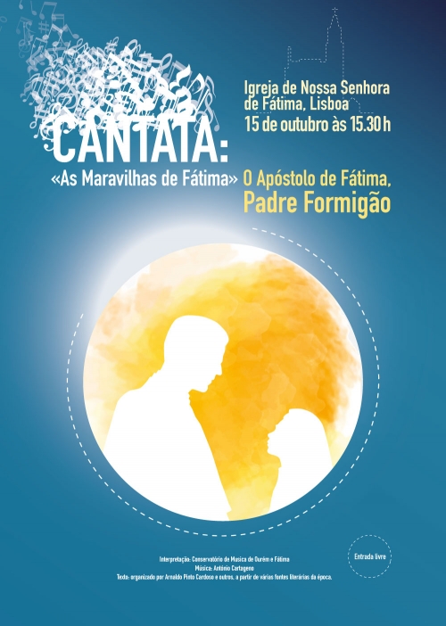 A Igreja de Nossa Senhora de Fátima, em Lisboa, vai receber, no próximo dia 15 de outubro, às 15h30, a cantata “As Maravilhas de Fátima – O Apóstolo de Fátima, Padre Formigão”. A iniciativa tem a interpretação do Conservatório de Música de Ourém e Fátima e a música está a cargo de António Cartageno. A entrada é livre. Em comunicado, a organização destaca o papel do padre Manuel Nunes Formigão para a divulgação da mensagem de Fátima. Em 2001 foi realizada a abertura solene do processo de canonização do sacerdote que era natural de Tomar e que desempenhou uma parte da sua formação e apostolado no Patriarcado de Lisboa.