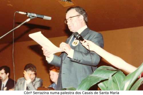 Nascido na Moita do Gavião, Benedita, no dia 2 de julho de 1924, o cónego José Mendes Serrazina, sacerdote do Patriarcado de Lisboa, fundou em 1957 – sete anos após a ordenação – o movimento familiar Casais de Santa Maria. O cónego Serrazina, ou o ‘padrinho padre’, como o tratavam os seus familiares, faleceu a 12 de maio de 2010. (na foto, durante uma palestra com os Casais de Santa Maria)