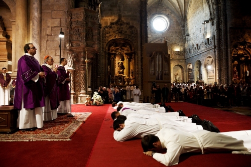 “O que pretendo partilhar convosco nesta homilia, pode resumir-se assim: O Advento, para nós todos e especialmente para vós, caríssimos ordinandos, é dom e tarefa. Dom de Deus que se encontra connosco, por iniciativa sua e correspondência nossa, que Ele mesmo suscita. Quando recebemos Cristo, Ele assimila-nos a si, para também por nós chegar a todos. Em suma, vivemos o Advento para sermos Advento, como o mundo espera”, manifestou o Cardeal-Patriarca, na celebração das Ordenações. Na igreja de Santa Maria de Belém, nos Jerónimos, D. Manuel Clemente destacou ainda a importância do Advento, o tempo litúrgico de preparação para o Natal. “Entramos em Advento, caríssimos irmãos. Dito doutra maneira, porventura mais certa, deixemos que o Advento entre no nosso coração e na nossa vida. Por isso nos paramentamos de roxo, cor de conversão ao Senhor que vem, como já veio e finalmente virá. Seguir-se-á o Natal, certíssimo n’Ele, o Emanuel, que quer dizer ‘Deus Connosco’. Também em nós, se realmente O aceitarmos, como Maria, Senhora do Advento, e com José, que lhe guardou o mistério”, convidou, sublinhando que “um tempo litúrgico não irá sem o outro”. “Só um Advento sério nos legitimará um Natal feliz. Comprometamo-nos com Deus, como Ele inteiramente se comprometeu connosco, na humanidade de Cristo, agora alargada na humanidade de todos”, acrescentou o Cardeal-Patriarca, na celebração onde ordenou seis diáconos com vista ao sacerdócio e um presbítero de uma congregação religiosa (ver caixa).
