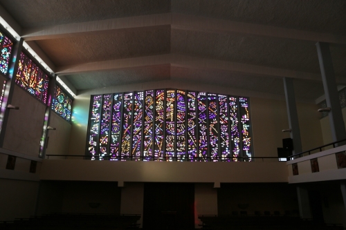 Mesmo ao lado do atual Convento da Luz, em Carnide, onde funcionou, em tempos, um Seminário, foi construída, em 1967, uma igreja que vinha responder aos “ventos de mudança” trazidos pelo Concílio Vaticano II. A igreja “foi construída naquilo que era um espaço complementar, uma casa de alfaias dos funcionários encarregados da manutenção do palácio”, explica ao Jornal VOZ DA VERDADE o superior da comunidade franciscana que ali vive, padre João Lourenço. Foi construída já numa “perspectiva de renovação conciliar do Vaticano II, no espírito da constituição ‘Sacrosanctum Concilium’, que solicita que a centralidade da igreja resida sobre o altar para a celebração. A sua construção decorreu num tempo em que o ‘Seminário das Missões Franciscanas’ – nome “oficial” que ainda hoje o convento mantém – tinha muitos formandos, teólogos e seminaristas e, por isso, uma parte era destinada à comunidade e outra aos fiéis. Estas duas dimensões da assistência tinham em comum a centralidade do altar”, releva o sacerdote franciscano, salientando as duas marcas arquitectónicas que estão presentes no templo que assinalou os 50 anos da sua inauguração na Festa Solene da Padroeira, Imaculada Conceição, no passado dia 8 de dezembro: “A primeira, o painel dedicado à Imaculada Conceição, junto do sacrário. Depois, um conjunto de vitrais que procuram traduzir plasticamente aquilo que é o ‘cântico das criaturas’ de São Francisco”.