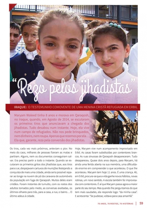 O sacerdote, nesta nota prévia, saúda o livro e também a AIS pelos seus 70 anos. “Alegramo-nos por esta publicação, felicitamos a Fundação Ajuda à Igreja que Sofre, e os seus responsáveis por este aniversário, e fazemos votos que estas histórias, que são a vida de cristãos no mundo, possam continuar a interpelar os leitores, mas, sobretudo, nos levem a olhar mais para o lado, reconhecendo uma Igreja que sofre no mundo”, deseja o diretor do Jornal VOZ DA VERDADE, padre Nuno Rosário Fernandes.