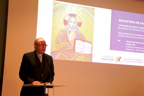 Falando mais concretamente sobre a importância da Palavra de Deus, D. Manuel Clemente sublinhou a insistência a dar à presença da Palavra na vida das comunidades cristãs. “É urgente dar à Palavra de Deus o lugar nuclear, ou central, na vida da comunidade. Nós não nos reunimos para falarmos as nossas coisas. Nós reunimo-nos, antes de mais, para escutarmos aquilo que Deus nos diz em Jesus Cristo e, depois, tirar daí todas as consequências, por palavras e por obras, para a vida, dentro e fora das comunidades”, destacou o Cardeal-Patriarca de Lisboa, garantindo que o cristianismo “não é a religião do livro”. “Nós somos a religião do Verbo encarnado. Aquilo que Deus nos diz, em Jesus Cristo, é Palavra, mas é Vida. Portanto, é muito mais do que o livro escrito, é uma Pessoa. É uma Pessoa viva em que o que diz e o que faz se torna, para nós, Vida. Ter este lugar essencial da Palavra de Deus é central, nuclear. E quando não é assim deixamos de ser ou ainda não começámos a ser a religião do Verbo encarnado. Somos a nossa religião”, apontou.