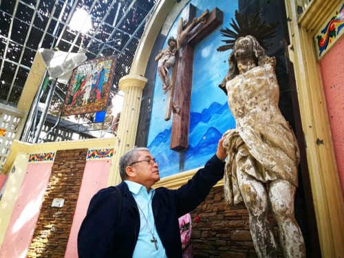 Dia 11 de Janeiro de 2018. O Bispo Edwin de la Peña, acompanhado por uma delegação da AIS, foi autorizado a rezar pela primeira vez na Catedral de Marawi, desde que a cidade fora ocupada pelos jihadistas. O Bispo já sabia o que ia encontrar. Já tinha visto fotografias e vídeos. Mas estar ali, voltar a cruzar aquela porta, voltar a olhar para a “sua” catedral depois da destruição foi completamente diferente. Foi de “partir o coração”, como confessou o prelado a Marc Fromager, o director do secretariado francês da Fundação AIS que o acompanhou naquele regresso. A estátua decepada de Nossa Senhora e a imagem completamente desfigurada de Jesus Cristo crucificado, saltavam à vista. Marc Fromager era o único estrangeiro na comitiva. “O momento mais emocionante foi, obviamente, quando o bispo se ajoelhou e ficou a observar todo o trabalho de reconstrução que agora tem de fazer.” Um trabalho, acrescenta, “não só de reconstrução da cidade, mas também de reconstrução espiritual da comunidade, para que possam todos voltar a viver juntos”.