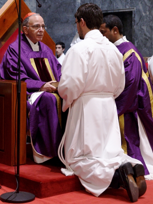“Estes momentos são sempre momentos bonitos, porque são verdadeiros e precisamente enquanto são verdadeiros. Houve tempos em que estes caminhos para as ordens sacras eram tomados muito por de fora, e até como uma ocasião de prestígio, de valorização social. Mas, corremos o risco de ficar ainda muito por de fora. O essencial deste momento e de tudo aquilo que, às ordens sagradas dizem respeito enquanto participação sacramental na vida de Cristo e em favor do seu povo, não se resolvem dessa maneira. O essencial é aquela palavra que ouvimos no Evangelho: o cálice. ‘Podeis beber o cálice que eu vou beber’. ‘Podemos’, disseram eles muito depressa, depressa demais na verdade. ‘O cálice que eu vou beber, haveis de bebê-lo’. Ou seja, a comunhão absoluta, definitiva, de vida e destino, com Jesus na sua obra redentora. Enquanto nós não estivermos neste ponto, não estamos em ponto nenhum, a não ser no de distração”, salientou o Cardeal-Patriarca, na sua homilia, durante a celebração na capela do seminário. “Este momento, até porque o vivemos em Quaresma, é para todos nós, cristãos, e muito em particular para aqueles que se destinam às ordens sacras, o momento de comunhão no cálice do Senhor”, acrescentou D. Manuel Clemente, reforçando: “Um destino de entrega por todos, definitivamente”.