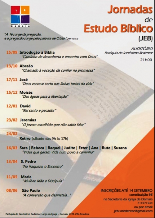As Jornadas de Estudos Bíblicos, organizadas pela Paróquia da Damaia, têm dado a conhecer a história de vida, de chamamento e de missão de diversas personagens bíblicas.