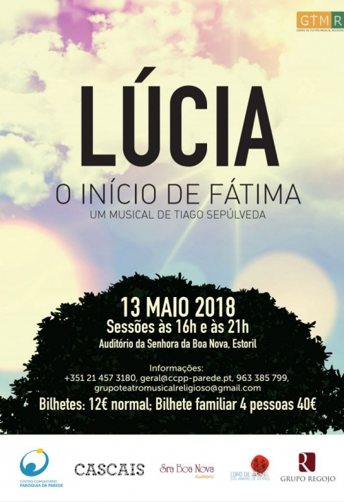 Este musical, da autoria de Tiago Sepúlveda, vai ter duas sessões, num único dia, a 13 de maio, às 16h00 e às 21h00, e conta com o apoio do Centro Comunitário da Paróquia da Parede, da Câmara Municipal de Cascais, do Centro Comunitário Senhora da Boa Nova, do Coro de Santo Amaro e do grupo Regojo.