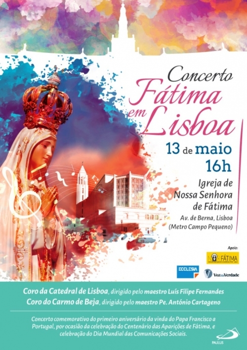 O Coro da Catedral de Lisboa e o Coro do Carmo de Beja vão atuar no concerto ‘Fátima em Lisboa’, que decorre este Domingo, dia 13 de maio, pelas 16h00, na Igreja de Nossa Senhora de Fátima, em Lisboa. Esta iniciativa da Paulus Editora pretende comemorar o primeiro aniversário da vinda do Papa Francisco a Portugal, por ocasião da celebração do Centenário das Aparições de Fátima, e também o Dia Mundial das Comunicações Sociais, que se celebra neste dia. “As músicas apresentadas estão integradas no livro com CD ‘Com Maria’, mas serão interpretados também dois temas inéditos, relativos às aparições de Nossa Senhora e Mensagem de Fátima”, refere um comunicado. O concerto tem entrada livre e conta com o apoio da Paróquia de Nossa Senhora do Rosário de Fátima (Lisboa), do Jornal VOZ DA VERDADE e da Agência Ecclesia.