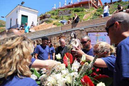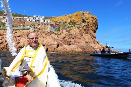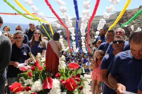Depois de benzida a imagem e colocada numa embarcação, as restantes embarcações engalanadas seguiram em procissão ao largo da ilha.