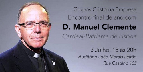 O Cardeal-Patriarca de Lisboa é o convidado do encontro de final de ano dos membros dos grupos Cristo na Empresa, um projeto da ACEGE (Associação Cristão de Empresários e Gestores). O encontro, para “poder ouvir e conversar” com D. Manuel Clemente, segundo um comunicado, vai ter lugar no Auditório João Morais Leitão, em Lisboa, no dia 3 de julho, terça-feira, das 18h00 às 20h00.