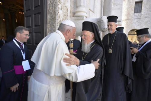 3. O Papa Francisco encerrou um encontro ecuménico com responsáveis cristãos da Terra Santa, na cidade italiana de Bari, defendendo que “não há alternativa possível à paz no Médio Oriente”. “Não se pode levantar a voz para falar de paz, enquanto, às escondidas, se perseguem desenfreadas corridas ao rearmamento”, alertou o Papa, no passado sábado, 7 de julho. “Basta de lucros de poucos à custa de muitos! Basta de ocupações de terras, que dilaceram os povos! Basta de sobrepor as verdades de uma parte sobre as esperanças da gente! Basta de usar o Médio Oriente para lucros alheios. A guerra é o flagelo que acomete tragicamente esta amada região e as suas vítimas são sempre as gentes simples”, advertiu, diante da Basílica de São Nicolau. Francisco convidou todos a superar diferenças, evitando a tentação de construir “muros” ou de se afirmar através da força, e defendeu “a escuta e o diálogo” como caminhos para o Médio Oriente. “Somente assim os gritos de guerra se transformarão em cânticos de paz”, sustentou. Evocando o “clamor” das crianças que são vítimas da guerra, o Papa rezou pelo Médio Oriente, para que “sejam dissipadas as suas trevas de guerra, do poder, da violência, dos fanatismos, dos lucros iníquos, da exploração, da pobreza, da desigualdade e do não reconhecimento dos direitos humanos”. Simbolicamente, foram largadas pombas brancas, num gesto pela paz.