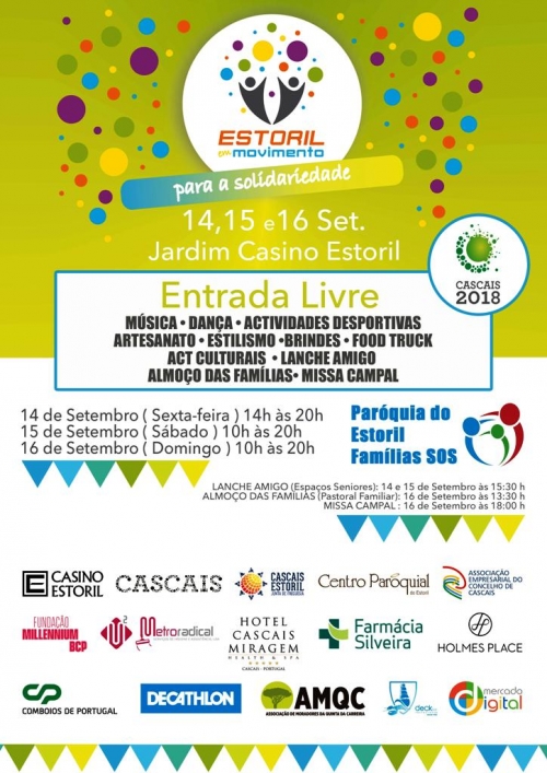 O Movimento das Famílias SOS da Paróquia do Estoril organiza, de 14 a 16 de setembro, nos jardins do Casino do Estoril, a segunda edição da iniciativa ‘Estoril em Movimento para a Solidariedade’, que visa angariar fundos para as famílias carenciadas. “O ‘Estoril em Movimento para a Solidariedade’ é um projeto que junta várias entidades locais, nomeadamente autarquia, estabelecimentos de ensino, empresas, comércio local, associações e instituições públicas e privadas, para um conjunto de atividades cujas receitas revertem a favor de famílias carenciadas da comunidade”, refere um comunicado. Ao longo de três dias, haverá exposições artísticas e culturais, concursos, atividades desportivas, música e animação, numa atividade que tem entrada livre.