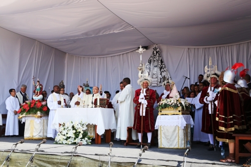Quem chegasse a Alcainça no passado Domingo, 16 de setembro, podia ser surpreendido pelo ‘rosto’ de toda a terra: as casas pareciam novas, devido às pinturas que levaram nos últimos dias; estas mesmas casas estavam também ornamentadas com ‘flores’ azuis e brancas e colchas brancas nas varandas e janelas; também as ruas estavam enfeitadas. Tudo foi preparado com um único objetivo: receber Nossa Senhora da Nazaré. E eram centenas, senão milhares, as pessoas que queriam estar com a Mãe de Deus.
