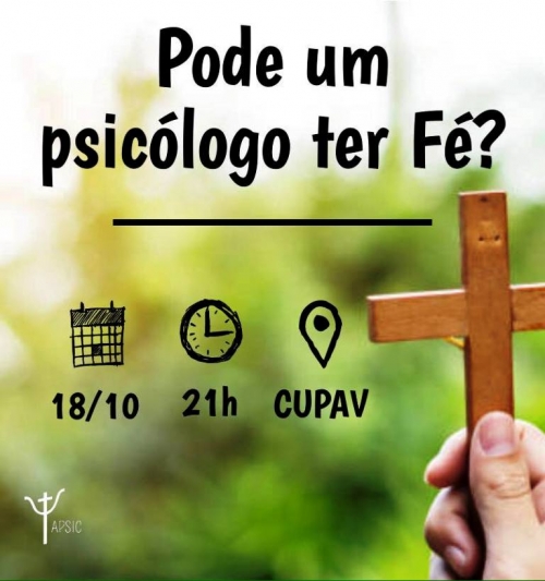 A APSIC – Associação de Psicólogos Católicos (https://psicologoscatolicos.pt) promove, no próximo dia 18 de outubro, quinta-feira, a partir das 21h00, uma reflexão sobre se ‘Pode um psicólogo ter Fé?’. Esta iniciativa vai decorrer na sede do CUPAV – Centro Universitário Padre António Vieira (Estrada da Torre, 26), em Lisboa.