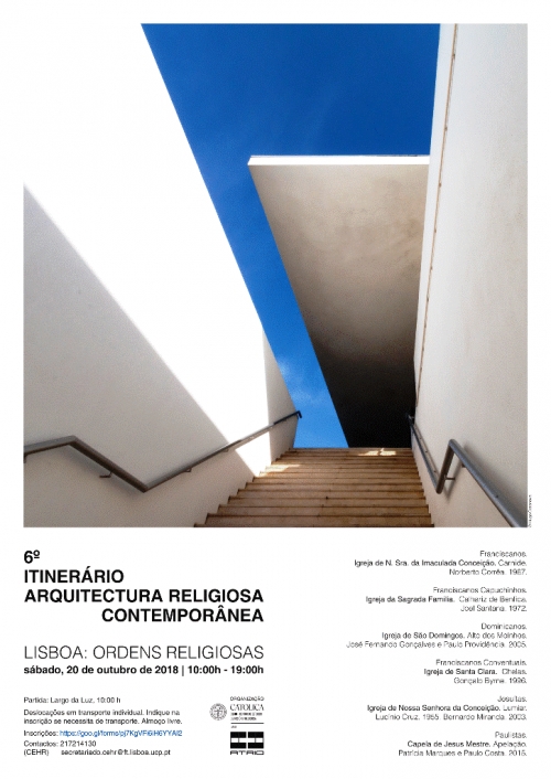 Conhecer de perto seis igrejas em Lisboa, pertencentes a congregações religiosas. É esta a proposta do 6º Itinerário de Arquitetura Religiosa Contemporânea, com o tema ‘Lisboa: Ordens Religiosas’, que decorre a 20 de outubro, das 10h00 às 19h00. O percurso começa na Igreja de N.ª S.ª da Imaculada Conceição (Franciscanos), seguindo para a Igreja da Sagrada Família (Franciscanos Capuchinhos) e a Igreja de S. Domingos (Dominicanos). Após o almoço livre, o itinerário recomeça na Igreja de Sta. Clara (Franciscanos Conventuais), depois na Igreja de N.ª S.ª da Conceição (Jesuítas) e termina na Capela de Jesus Mestre (Paulistas). A iniciativa é promovida por um grupo de arquitetos voluntários, em parceria com o Centro de Estudos de História Religiosa da Universidade Católica.
