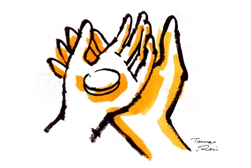 Por entre a multidão que circulava no Templo, Jesus observa. Vê ricos que lançam avultadas ofertas na arca, e vê a humilde e discreta viúva que coloca duas pequenas moedas. São duas riquezas diferentes: a de quem é rico e pode dar o que sobra, e a de quem é rico porque dá tudo o que tem. A primeira é a famosa riqueza acumulativa, ostensiva, quantas vezes aumentada à custa de pessoas e países mais pobres, geradora de um fosso crescente entre ricos e pobres, alimentada e justificada por políticos e economistas credenciados. A outra é a riqueza que não endeusa os bens, que os oferece generosamente, que se faz dom de si mesmo e não apenas de coisas, que valoriza o que cada um pode dar, e acode quem verdadeiramente precisa. Uma é riqueza que mata (uns pelo excesso e outros pela penúria!), a outra é riqueza que dá vida (porque a transforma, e põe tudo e todos ao serviço do maior bem).