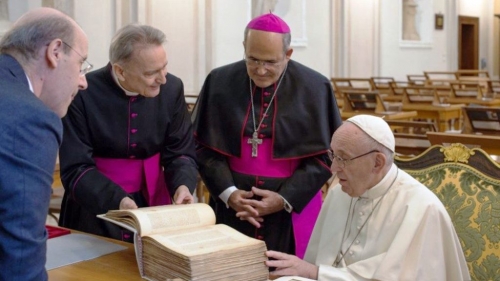 2. O Papa Francisco visitou, na manhã de terça-feira, 4 de dezembro, a Biblioteca Apostólica Vaticana, acompanhado do arquivista e bibliotecário desta biblioteca, o arcebispo português D. José Tolentino de Mendonça, e do prefeito da biblioteca, monsenhor Cesare Pasini. A notícia foi comunicada pelo Twitter da conta oficial da Biblioteca Apostólica Vaticana, @VaticanLibrary, que publicou também algumas fotos da visita papal.