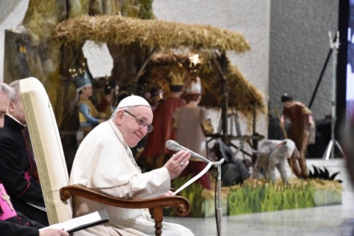 1. O Papa Francisco convidou a não pôr “de lado o Festejado” do Natal. “A festa do Natal está próxima; mas há o perigo de errar a festa. Se o Natal se reduzir a uma bela festa tradicional, no centro da qual estamos nós e não o Deus Menino, será uma ocasião perdida. Não ponhamos de lado o Festejado, como sucedeu no primeiro Natal, quando Jesus «veio para o que era Seu, e os Seus não O receberam». Qual é então a festa de Natal que agrada a Deus? Para descobrir os gostos de Deus, precisamos de olhar como foi o primeiro Natal. Foi um Natal cheio de surpresas, obrigando Maria e José a ajustarem as suas vidas; mas a maior das surpresas aparece na noite de Natal: o Filho do Altíssimo é um bebé; o Verbo de Deus, a Palavra divina é um infante, ou seja, «incapaz de falar»; não vieram acolher o Salvador as autoridades do tempo, mas simples pastores que guardavam os rebanhos de noite. Quem o teria imaginado? Mas Natal é celebrar o inédito de Deus, ou melhor, um Deus inédito, que subverte os nossos planos e expetativas. Celebrar o Natal é acolher na terra as surpresas do céu. O Natal deu início a uma nova época onde a vida não se programa, mas se doa, onde se deixa de viver para si mesmo segundo os próprios gostos, a fim de se viver para Deus e com Deus, porque Ele é Deus connosco. Este ano teremos Natal se, como José, dermos espaço ao silêncio; se, como Maria, soubermos dizer a Deus: «Eis-me aqui»; se, como os pastores, sairmos dos nossos recintos para ir ter com Jesus; se, como Jesus, nos aproximarmos de quem está sozinho. Amados irmãos e irmãs, feliz Natal, cheio das surpresas de Jesus! Estas poderão parecer incómodas, mas são os gostos de Deus”, salientou o Papa, na audiência-geral de quarta-feira, 19 de dezembro.