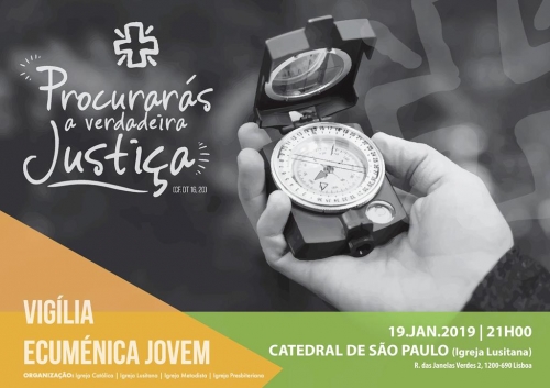 Para assinalar a Semana Mundial de Oração pela Unidade dos Cristãos (18 a 25 de janeiro), vai ter lugar a Vigília Ecuménica Jovem, que decorre este sábado, dia 19, pelas 21h00, na Catedral de São Paulo (Igreja Lusitana Evangélica - Comunhão Anglicana), em Lisboa, com o tema ‘Procurarás a verdadeira Justiça’ (Cf. Dt 16, 20). “Para além das Igrejas promotoras – Igreja Presbiteriana, Igreja Católica, Igreja Metodista e Igreja Lusitana –, também outras comunidades são convidadas a participar nesta noite de oração”, refere um comunicado do Serviço da Juventude do Patriarcado de Lisboa.