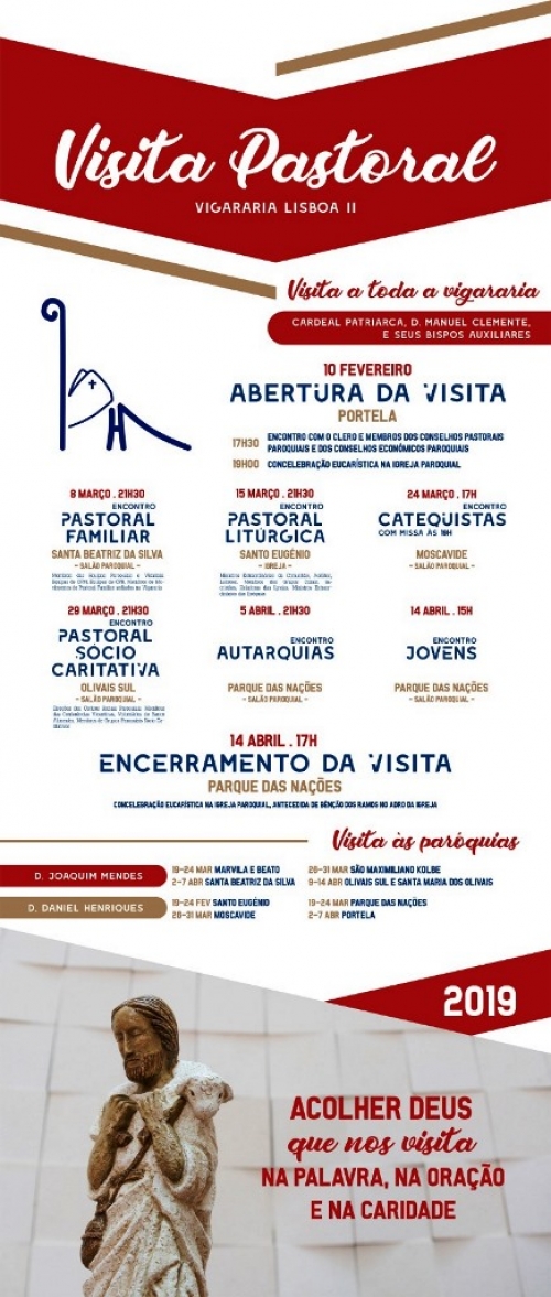 As dez paróquias que compõem a Vigararia Lisboa II vão receber a Visita Pastoral, que tem início no dia 10 de fevereiro, na Portela, e termina no Domingo de Ramos, 14 de abril, no Parque das Nações.