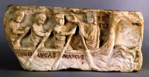 Fragmento de um sarcófago em mármore branco (início do séc. IV)