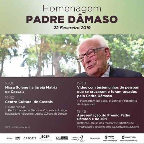 A homenagem vai ter lugar na próxima sexta-feira, dia 22 de fevereiro – data que assinala o primeiro aniversário da morte –, e tem início, às 18h00, com a Missa solene na Igreja Matriz de Cascais. Às 19h00, no Centro Cultural de Cascais, haverá uma Performance de Dança e Voz sobre Justiça Restaurativo, a que se segue a projeção de um vídeo com testemunhos de pessoas que se cruzaram e foram tocadas pelo padre Dâmaso, entre os quais uma mensagem do Presidente da República, Marcelo Rebelo de Sousa. Pelas 19h45, vai ser apresentado o Prémio Padre Dâmaso, e respetivo júri, que pretende distinguir, anualmente, os melhores trabalhos de investigação e ação na área da Justiça Restaurativa.