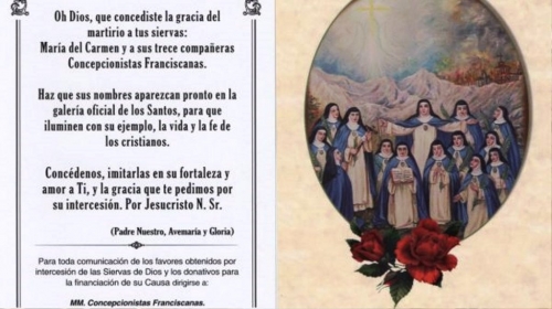 A 22 de junho, na catedral da Almudena, em Madrid, vão ser beatificadas 14 Irmãs Concepcionistas, mártires da guerra civil da Espanha, nos anos 1936-39. A informação foi revelada ao Jornal VOZ DA VERDADE pelas religiosas do Mosteiro do Sagrado Coração de Jesus, na Amoreira-Estoril. “A causa da sua morte, que elas aceitaram com generosidade e alegria, foi unicamente o facto de serem religiosas”, refere um comunicado. “As irmãs convidam todos a alegrar-se com elas e a dar graças a Deus. E ainda, para quem quiser, a fazer-se presente em Madrid nesse dia”, acrescenta a nota das religiosas.