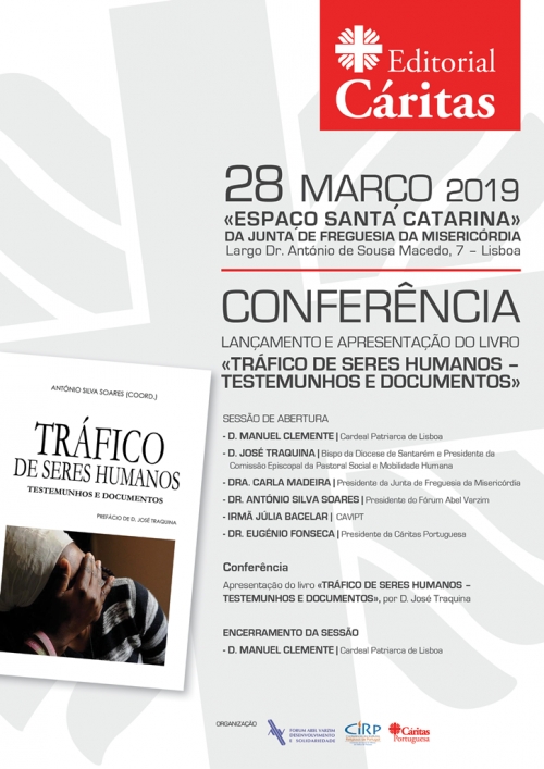 ‘Tráfico de seres humanos - testemunhos e documentos’, com coordenação de António Silva Soares, presidente do Fórum Abel Varzim, é a mais recente obra editada pela Editorial Cáritas. O livro vai ser lançado no dia 28 de março, quinta-feira, às 18h00, no Espaço Santa Catarina, na Junta de Freguesia da Misericórdia, em Lisboa, por D. José Traquina, Bispo de Santarém e presidente da Comissão Episcopal da Pastoral Social e Mobilidade Humana, que também assina o prefácio. Haverá ainda uma conferência sobre a temática do tráfico de seres humanos, que vai contar com a presença, entre outros, do Cardeal-Patriarca de Lisboa, D. Manuel Clemente, e do presidente da Cáritas Portuguesa, Eugénio Fonseca.