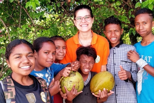 Em janeiro de 2016, diz que se fez “de convidada para o VTS, depois de participar no Jubileu das Irmãs Dominicanas de Santa Catarina de Sena (IDSCS), dos 150 anos da fundação e dos 100 anos da morte da sua fundadora, Teresa de Saldanha” e conta-nos o seu percurso: “Deixei-me contagiar pela alegria desse fim-de-semana, era essa alegria que fazia sentido viver e viver em grupo, enquanto católica. Envolvi-me no grupo, no nosso projeto da loja social no Bairro de Santiago (Aveiro), fui-me descobrindo à luz de uma espiritualidade dominicana assente no estudo, na oração, na vida comunitária e na pregação. Nesta pregação muito mais por gestos do que por palavras, nesta pregação muito mais do dia-a-dia do que de acontecimentos. No verão de 2016, fiz a peregrinação a pé a Santiago de Compostela e participei do ‘Dominismissio (semana missionária organizada pela Pastoral Juvenil das IDSCS) em Castro Daire. Já sabia que ser católico era estar ao serviço do Amor que Deus é, deixei-me surpreender pelas Suas pequenas grandes revelações em cada rosto, em cada um. Em 2017, em Estremoz, voltei a participar da experiência missionária, Deus pediu-me aquilo que me sabia capaz de dar, deu-me tudo o que precisava para cumprir essa missão, percebi que se estivesse cheia do Seu amor, nada mais seria necessário. E assim me dispus, perante as Irmãs, a partir por mais tempo em missão e Deus quis-me em Timor este verão. Assim acreditei, assim confiei e soube-o de verdade por tudo quanto vivi. Em Timor, estive em duas comunidades das Irmãs, Remexio e Hola-Rua, trabalhando nos seus CATL, que complementam as aprendizagens da escola, que proporcionam aos meninos outro tipo de experiências artísticas, que são espaço de acolhimento, carinho e paz. Num dos CATL, através de atividades lúdicas e de dinâmicas de grupo, propus-me a auxiliar no reforço da Língua Portuguesa; no outro, fui um mês e meio intensivo a dar as bases da teoria musical e sobretudo a fazê-los criar, tocar e cantar sem fim. A fazê-los descobrir o seu potencial, a vê-los surpreenderem-se consigo próprios, a desejar que se atrevam a sonhar com mais e que se deixem surpreender por tudo quanto podem fazer e ser. A vê-los brilhar. Há situações que nos chocam, desde condições de saúde, higiene e habitação, mas sobrepõe-se uma generosidade e uma capacidade de acolher que não é para todos, dando o melhor do pouco que têm, distribuindo sorrisos e nunca abdicando do “Bom dia, Mana Ana!”. Nunca foi por terem dificuldades no português nem eu por saber tão pouco de Tétum que deixamos de comunicar e criar relações que trouxe comigo… e os abraços dados com sinceridade ligam o coração de qualquer um. Foram três meses vividos com muita serenidade, sabendo-me instrumento de Deus junto dos timorenses para que eles se sentissem especiais. Houve alguém que atravessou o mundo para estar ali com eles porque eles são especiais, porque eles são importantes, porque eles são filhos de Deus, porque eles são nossos irmãos. E em cada carinho, brincadeira, canção, uma Ana Emanuel tão grata, a sentir-se tão especial pela graça que era estar ali com aquelas pessoas únicas. Revisitar Timor é revisitar cada rosto que me soube tocar com o Seu amor, revisitar Timor é redobrar forças para continuar a missão por cá, sabendo que é dando que se recebe, que é vivendo em Deus e por Deus que seremos felizes”.