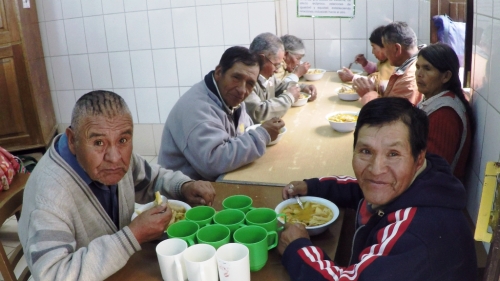 As Missionárias Cruzadas da Igreja, congregação apoiada pela Fundação AIS, são responsáveis por alguns conventos e vários refeitórios sociais. O de Oruro é apenas um exemplo. As mesas de madeira são compridas. Junto a elas, bancos corridos vão acolhendo, à hora de almoço, homens e mulheres de toda a cidade. Todos eles têm uma coisa em comum: são pobres. São extremamente pobres. A cidade de Oruro já nem repara neles. Habituou-se às pessoas agachadas nos cantos das ruas, às vezes de mãos estendidas ou simplesmente com os olhos postos no chão. São como sombras. São os pobres. A sociedade não repara neles e, não os vendo, não se condói com a sua presença. A Irmã Nelly Soria, responsável pelo refeitório, conhece-os quase todos. Sabe mesmo o nome deles, às vezes até as suas histórias. Todos os pobres que almoçam no refeitório de Oruro vêm das periferias de que fala o Papa Francisco. Estão ali, mas são como fantasmas. Só as irmãs reparam neles. Só as irmãs fazem questão de os acolher. A Irmã Nelly recebe-os com carinho. Quase todos têm o rosto carregado de rugas. São cicatrizes da vida. São marcas do infortúnio.
