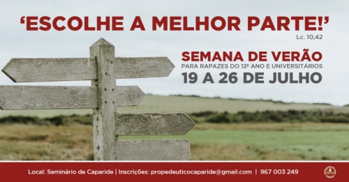 - Semana de Verão no Seminário de Caparide (19 a 26 de julho) – para rapazes do 12º ano, universitários ou já a trabalhar (inscrições em http://seminarios.patriarcado-lisboa.pt/)