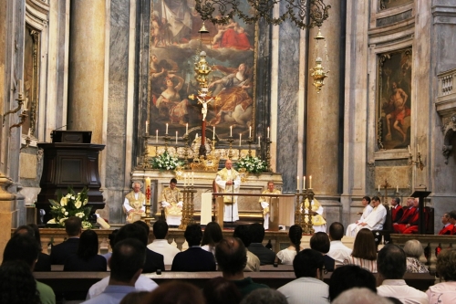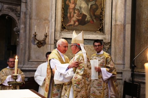 Na celebração que assinalou o “meio século” de ordenação sacerdotal do cónego Marim, o Cardeal-Patriarca de Lisboa felicitou o sacerdote e convidou os paroquianos a refletirem sobre a importância do sinal da cruz. “O sinal da cruz significa as duas dimensões completas que a vida ganha em Cristo e, por isso, são a nossa glória. Para cima, em direção ao Pai, em ação de graças; para os lados, para chegar a todos, em dedicação e caridade. No meio, está o coração de Jesus. Esta é a Basílica do Coração de Jesus, a primeira que lhe foi dedicada na Europa, mas é sobretudo na nossa vida que isso vai acontecer”, desafiou, na Missa que decorreu no passado Domingo, 7 de julho, na Basílica da Estrela e onde também foi assinalado o 6.º aniversário da entrada solene de D. Manuel Clemente como Patriarca de Lisboa.