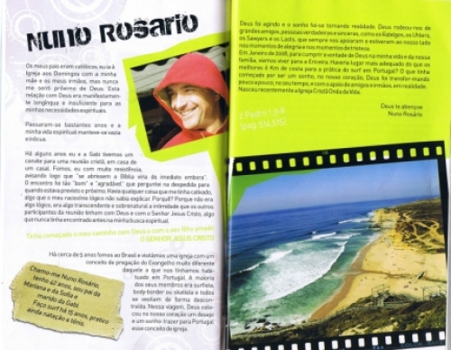 Bancário de profissão, Nuno Rosário é surfista nas horas vagas e pertence aos ‘Christian Surfers International’ de Portugal. A entrevista à VOZ DA VERDADE foi dada em plena praia de Carcavelos. Já sem o fato, Nuno sente-se mais aliviado: “Ainda bem que já tirei a gravata, que não faz parte da minha vestimenta do dia-a-dia, mas que é algo que tenho de usar por causa da minha profissão”.