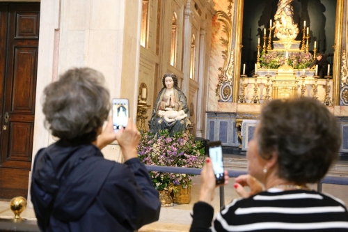 O pouco tempo que o grupo se demorava em cada templo nem sempre preenchia o desejo de todos, mas as curiosidades partilhadas acrescentavam vontade para voltar, com maior tranquilidade, aos templos que continuam a “deslumbrar” quem os visita, garante a guia Joana Macedo. “As pessoas deslumbram-se muito com o interior dos templos, ao reconhecerem os artistas excelentes que nós tínhamos: Pedro Alexandrino, Machado de Castro. Os edifícios são como nós: com rugas e cicatrizes, mas isso conta a história deles, assim como conta a nossa. Ao longo deste percurso, descobrimos histórias muito curiosas sobre algumas peças e vamos também aprendendo história, a história de Portugal que está subjacente a algumas datas importantes destes edifícios”, refere. Exemplo disso é a imagem quinhentista de Nossa Senhora do Restelo – diante da qual rezaram os navegadores Vasco da Gama e Pedro Álvares Cabral antes de partirem em viagem –, que pode ser encontrada na Igreja da Conceição Velha, recentemente restaurada.