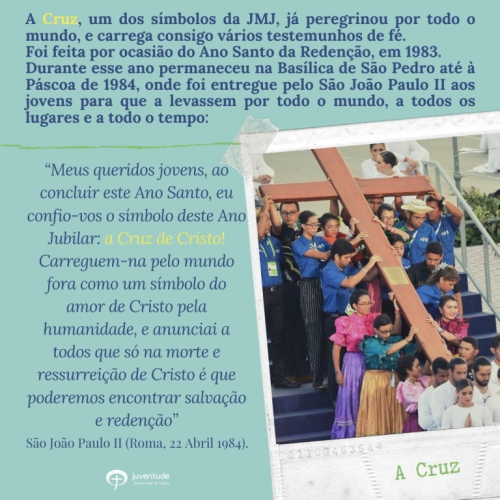Com a sua primeira edição oficial em 1986, a Jornada Mundial da Juventude (JMJ) foi desde cedo acompanhada pelo seu primeiro símbolo oficial: a Cruz. Feita em 1983, por ocasião do início do Ano Santo da Redenção e entregue aos jovens por São João Paulo II em 1984, a Cruz Peregrina tem sido, desde aí, levada em peregrinação pelos mais diversos países do mundo.