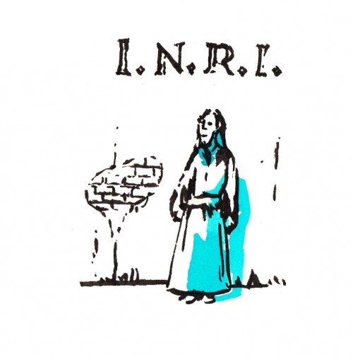 No Calvário estão três cruzes. E três crucificados. À volta, povo anónimo a assistir, soldados que executaram as sentenças, chefes dos judeus que insultam Jesus e esperam a sua morte, e certamente alguns amigos e familiares, talvez discípulos do crucificado mais importante. Converge para esta cena a história da humanidade e sentimos um abismo negro onde a esperança se afunda. Cada um de nós se coloca como espectador / actor neste quadro. Com as nossas ideias de triunfo e de realeza, de poder e de glória, e a dúvida da necessidade de um tal sofrimento.