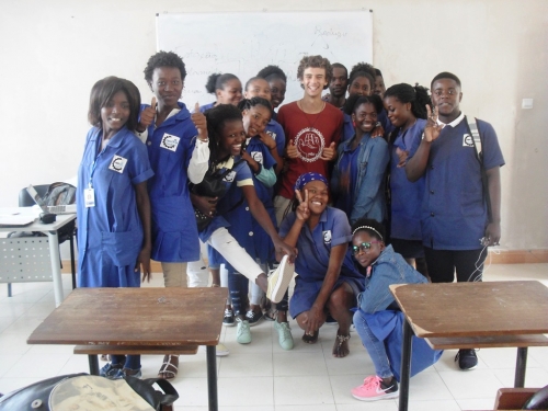 Em julho de 2019, partiu em missão para Benguela (em Angola) inserido num grupo de cinco elementos onde permaneceu até setembro. Sobre esta experiência, partilha: “Fomos acolhidos pela Casa do Gaiato de Benguela, que não só nos deu casa para os dois meses como nos inseriu no seu modo de vida, em que pudemos assistir à sua missa todos os Domingos, rezar o terço diariamente e por vezes passear na montanha ou na praia. Foi nestas atividades que desenvolvemos um forte sentimento de cumplicidade com os gaiatos, que nos aceitaram desde o início como se de lá já fizéssemos parte. Este sentimento revia-se na participação dos mesmos nas nossas atividades, tais como o campo de férias que organizámos para as férias deles, formações de desenho, saúde, sexualidade, etc. No entanto, também nos dedicámos à recolha de necessidades em instituições fora desta casa, e constatámos que, mesmo com o apoio dos Leigos para o Desenvolvimento, ainda havia por ali muito a fazer. Considerando o que era necessário fazer, o que éramos capazes de fazer e o tempo que tínhamos, dividimos o nosso trabalho por diferentes instituições. Abordámos o Bairro da Graça, a Aldeia SOS, o Abrigo, entre outros, e demos-lhes o que podíamos dar, formações, cursos e workshops sobre o que sabíamos, como Saúde Pública, Inglês, Informática e Reciclagem. Mas também reparei que lhes dávamos outras coisas, o simples estar era muito importante e sentir a nossa presença e atenção numa sociedade tão desfavorecida torna-se importante. Isto sente-se quando, mal entramos pela primeira vez no Bairro da Graça e sem nos conhecer, eles agradeciam-nos por simplesmente dançarmos com as crianças ou lhes perguntarmos acerca das principais expressões do seu dialeto. Nisto tudo, cheguei à conclusão que o mais importante que lhes dávamos não eram bens materiais, que eram também importantes e muito necessitados, mas sim as formações que lhes dávamos, a nossa presença e atenção e sobretudo o amor que lhes transmitíamos. Da mesma forma, do que recebíamos desta comunidade, também me tinha maior significado o que não era material, a atenção deles nas nossas palestras, a felicidade que recebíamos deles nas atividades mais simples e principalmente a gratidão, em que ouvir um simples obrigado no final de uma atividade era suficiente para voltar feliz para casa e suportar todo o cansaço que aquela missão exigia, e compreendi que recebia mais do que o que dava, apenas recebia de forma diferente, fazendo-me desejar cada vez mais não sair de lá e prolongar ao máximo o quotidiano de acordar cheio de crianças à minha volta, fazer compras no mercado da Graça onde se desenvolvia sempre alguma conversa (ou brincadeira se estivéssemos com as crianças), trabalhar no duro num objetivo em que tão fortemente acredito e terminar o dia com Deus, nas orações comunitárias, que não só nos faziam sentir ao Seu lado como nos embalavam a um descanso necessário para o estarmos prontos para o próximo dia. Assim, senti logo que os dois meses que passaram foram muito curtos, quer por querer continuar a viver tudo isto, quer por sentir que ainda podíamos fazer muito mais se lá nos mantivéssemos, mesmo tendo sido tão bem aproveitados.”