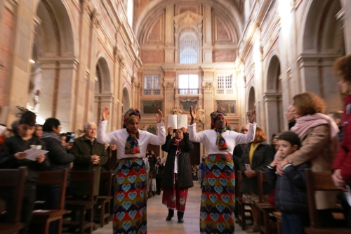 A celebração na igreja da Basílica de Mafra foi animada com cânticos e danças africanas que acentuaram a “diversidade” e “universalidade” da Igreja. “Na forma como estamos a celebrar a Eucaristia, percebemos a beleza da Igreja na sua universalidade. A Igreja tem esta diversidade, na forma como em todo o mundo se reza e se louva o Senhor, unidos na mesma fé”, referiu D. Daniel Henriques, apontando a Palavra de Deus como “alimento” para “conduzir interiormente, no caminho da Santidade”. “Na Carta Apostólica que institui o ‘Domingo da Palavra’ [celebrado neste Domingo, 26 de janeiro], o Papa Francisco fala da importância de destacar a Palavra de Deus. Ela não é, simplesmente, mais um momento da Missa. Nós acolhemos o Senhor na sua Palavra”, acrescentou.